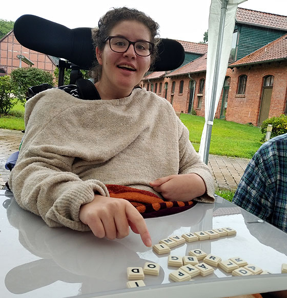 Ein anderes Übungsfeld hat sie dafür mal wieder mit Bravur absolviert: mit Scrabble-Steinen Wörter bilden klappt nahezu perfekt:
