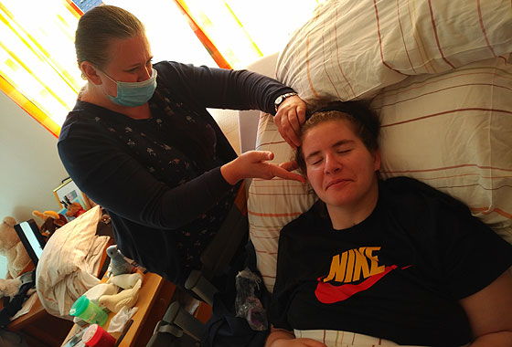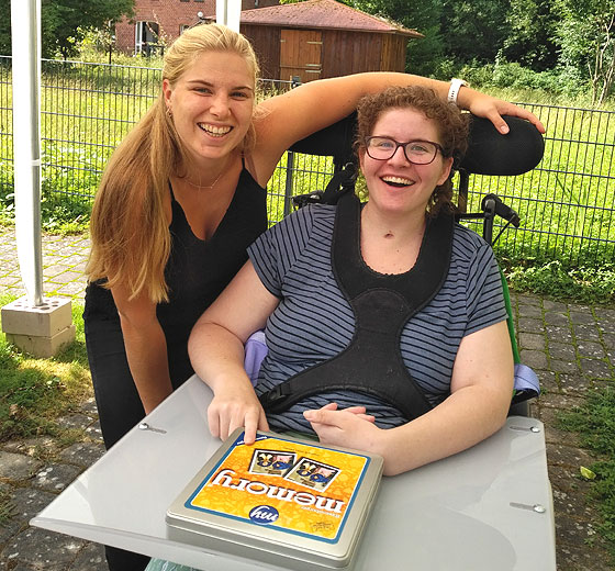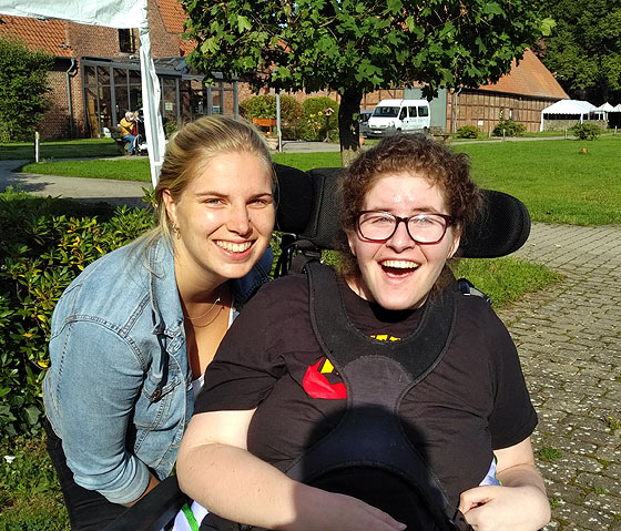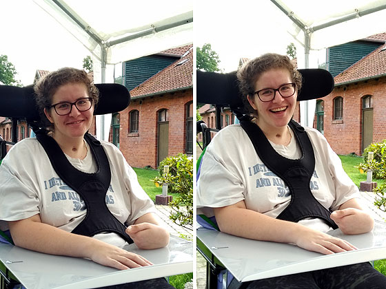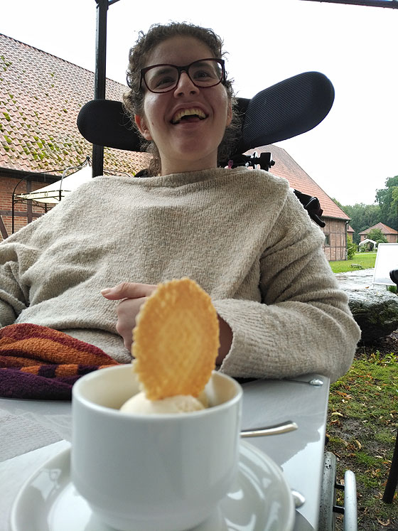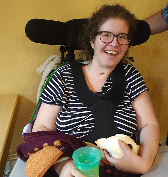 Am Montag konnten wir zwischen Stephanies Mittagessen (ca. 11:30) und ihrem Abendessen (ca. 17:30) die ganze Zeit bei ihr bleiben, da für sie keine Therapien angesetzt waren – das war natürlich ideal. Sie hat sich sehr über Eileen gefreut und sie zudem auch sofort erkannt. Kein Wunder, denn neben Andrea hat Eileen eigentlich bislang die meisten Videos und Updates von sich geschickt. So etwas bleibt selbst Stephanie im Gedächtnis.