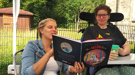 Am Dienstag teilten wir unseren Besuch terminbedingt in zwei Etappen auf. Vormittags hat Eileen aus Stephanies derzeitigem Lieblingsbuch „Das Neinhorn“ von Marc-Uwe Kling vorgelesen …