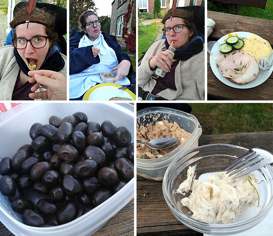 So auch über ihren letzten großen Test der Logopäden, die ja schließlich über die Freigabe weiterer Essensvarianten entscheiden. Am Dienstag bekam sie zum Abendessen schon Graubrot mit Rinde, Scheibenwurst, Gurkenscheiben und Paprikastreifen, da sie mittags mit einem unpürierten (!!!), dafür aber klein geschnittenen Nackensteak (!!!) keine sonderlich großen Schwierigkeiten hatte und dadurch wohl die nächste Lockerung erreichte. Dieses Erfolgserlebnis mit dem Steak erzählte sie sogar Carsten freudestrahlend am Telefon, so wichtig war ihr das: