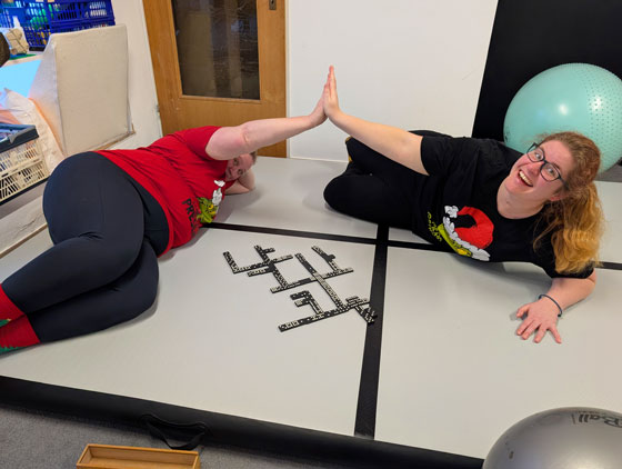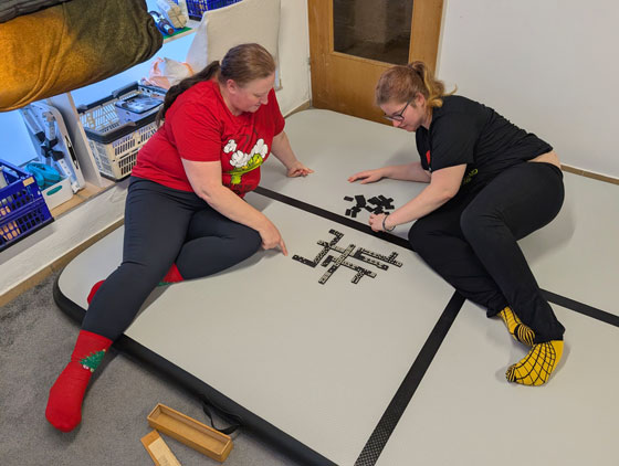 Oder wir spielen in der arbeitsfreien Zeit mal eine Runde Domino im Liegen: