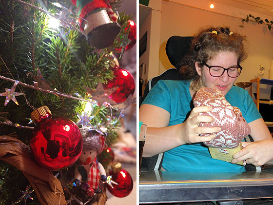 Manchmal braucht sie noch Hilfe, da die linke Hand dafĂŒr viel zu steif bzw. nicht so flexibel in der Nutzung (Drehen, Greifen, Anwinkeln) ist: