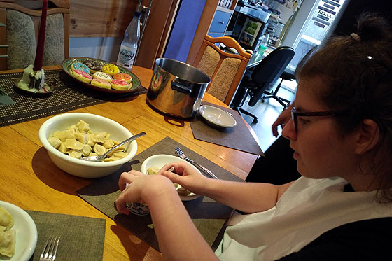 Weitere Geschmackserlebnisse, welche sie nun endlich wieder von ihrer persönlichen Wunschliste streichen kann, wĂ€ren Pelmeni mit Smetana (am Samstag) …