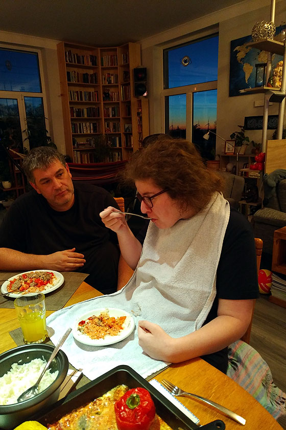 Letzteres war u.a. auch eine VorĂŒbung zu ihrem finalen Höhepunkt und Wunschobjekt: einem Döner. Da sie jetzt alles ohne Probleme, Verschlucken und Husten geschafft hat, wird dieser auch noch hundertprozentig in diesem Jahr mal geordert werden. Aber was kommt dann? Wir werden sehen, welches Geschmackserlebnis sie sich wĂŒnscht und welches Ziel sie sich als nĂ€chstes setzt.
