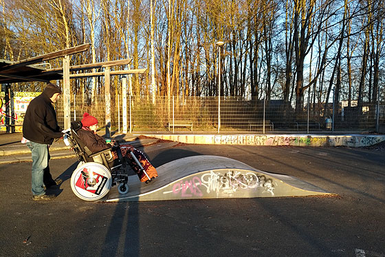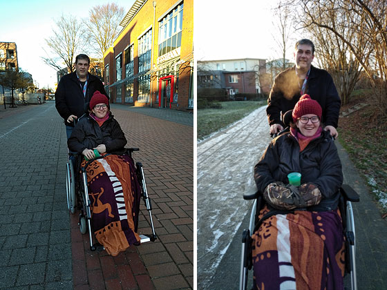 Der AnhĂ€nger ist mittlerweile von Carstens geschickten HĂ€nden voll prĂ€pariert, sodass der Rollstuhl gesichert bzw. geschĂŒtzt ist und mit nur wenigen Handgriffen auf- und abgeladen sowie zum Teil auseinander- und wieder zusammengebaut werden kann. Auch der körperlich fĂŒr beide Parteien recht anstrengende Transfer vom Rolli ins Auto und zurĂŒck geht zunehmend routinierter vonstatten und dauert jetzt sogar nur noch ca. 10-15 min … ganz ohne blaue Flecke oder anderer Blessuren đ