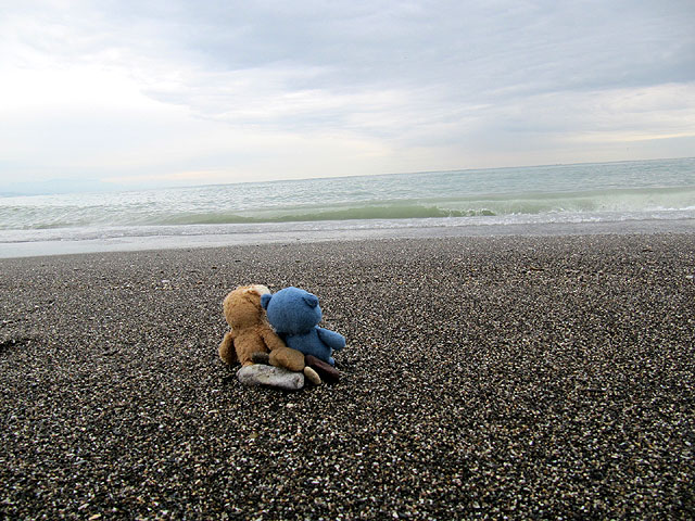 am Strand sitzen und den Wellen bei ihren Bewegungen zuschauen. |