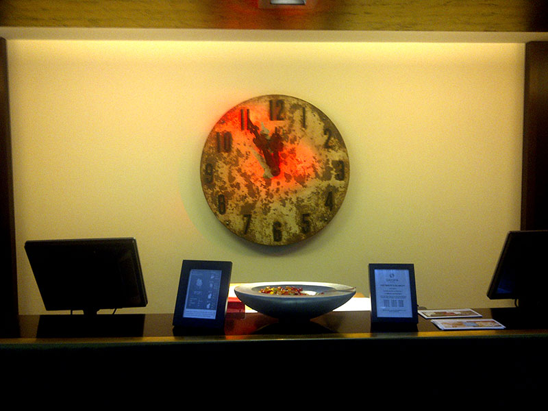 von Carsten: im Hotel "Gastwerk" in Hamburg ist es an der Rezeption immer Fünf-vor-Zwölf ... auch mittwochs um 17:30 Uhr.