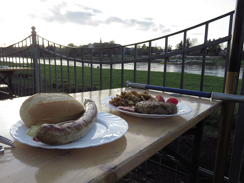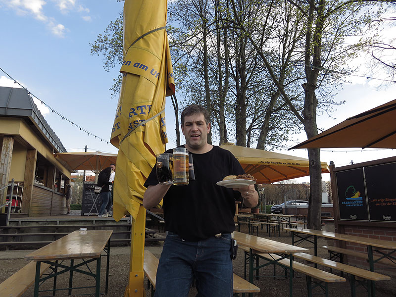 Von Carsten: auf dem Weg zum Biergarten an der Elbe ... Carstens Cousin aus Würzburg schaut mal für einen Sprung vorbei