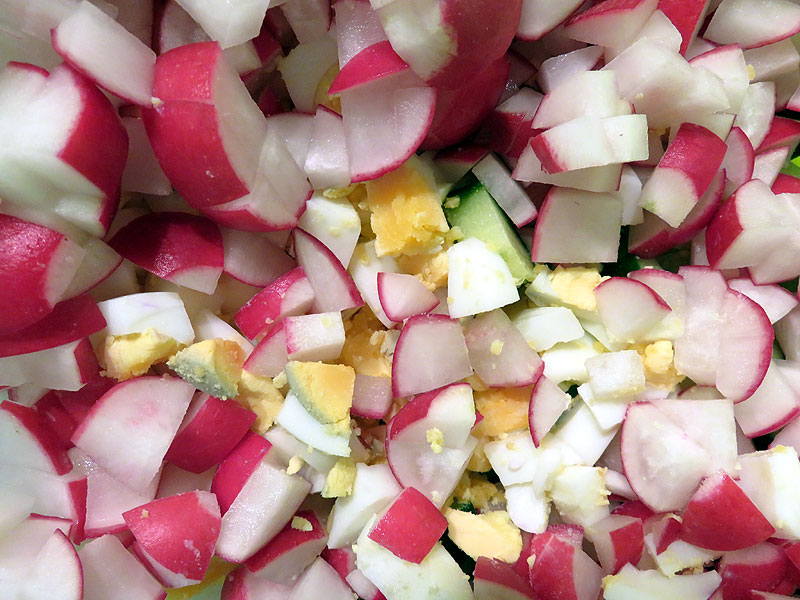 von Olga: versprochen, fertig sieht Okroschka (eine kalte Gemüsesuppe) noch sehr viel besser aus... allerdings war ich mit der Zubereitung nicht schnell genug für 17:30.