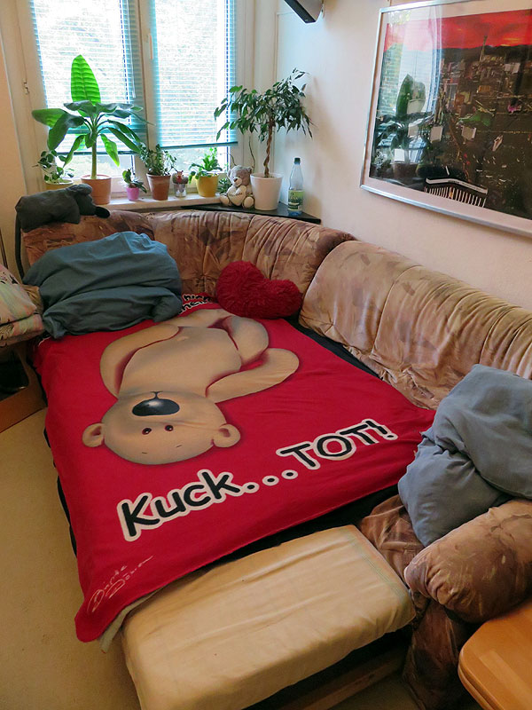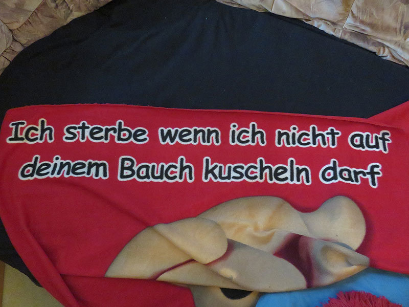 Nachtrag: es sei noch schnell der obere Text der Decke nachgereicht, denn das gezeigte Statement ist sicherlich nicht sehr einladend für Gäste ;o)