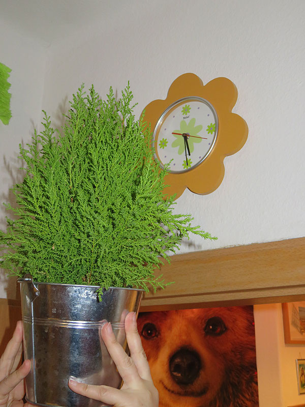 von Carsten: der diesjährige Tannenbaum hält Einzug ins Apartamento OLCA ... Olga kommt pünktlich17:30 damit nach Hause und auch Paddington scheint er zu gefallen ;o)