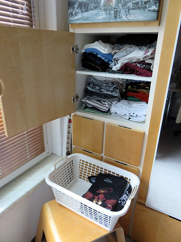 von Carsten: eigentlich warten wir darauf, daß uns jemand abholt ... da läßt sich nebenbeisehr gut die zusammengefaltete Wäsche in den Schrank packen ;o)