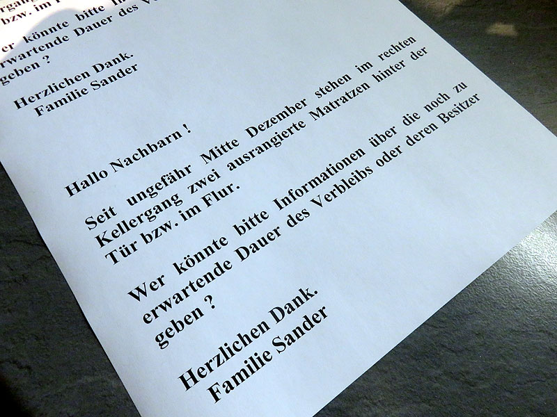 von Carsten: kleine Probleme mit den Nachbarn erfordern (erst einmal) nur kleinere Maßnahmen ...