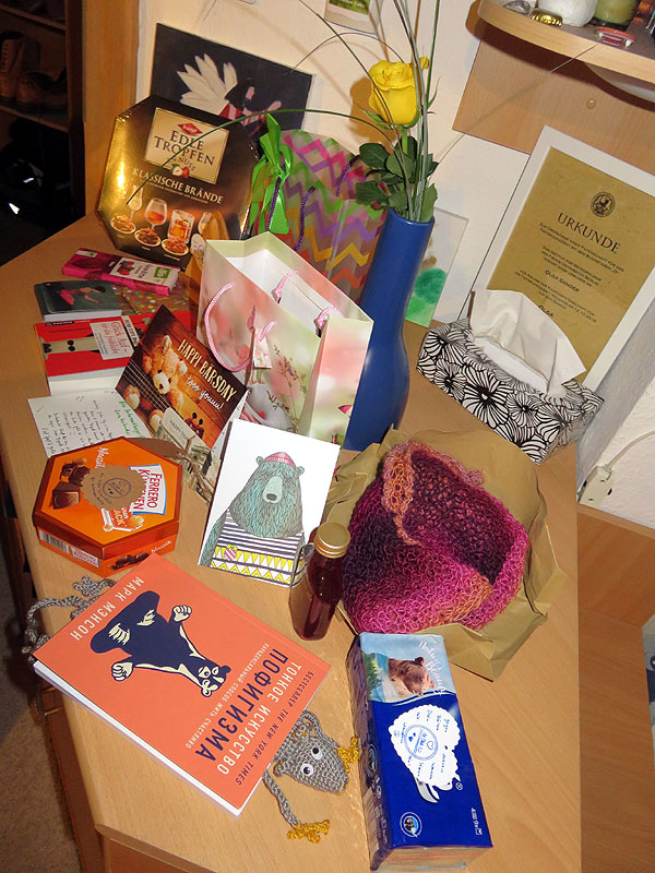 von Olga: hier meine Geschenkesammlung vom gestrigen Geburtstag - ich bin ja soooo dankbar, wie viele liebe Menschen an mich gedacht haben.