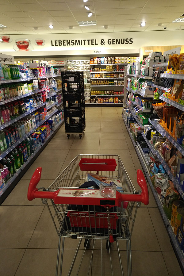 von Olga: während Carsten über mir die Axt schwingt, erledige ich kurz ein paar Besorgungen im Rossmann unter uns.