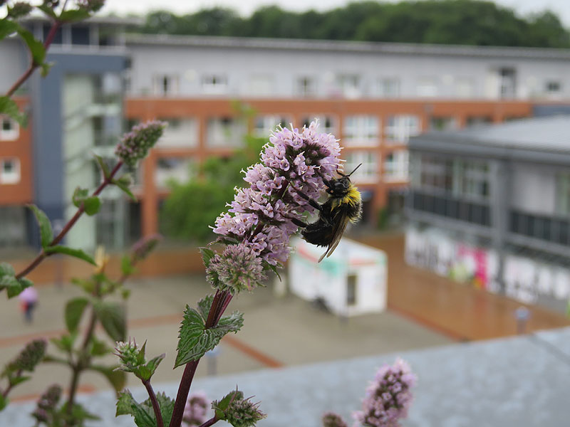 von Carsten: nach einem recht heftigen Platzregen wurde unsere Minze für diese Hummel wohl zum Rettungsanker