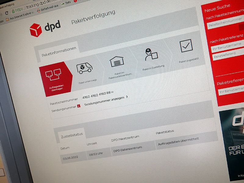 von Carsten: na toll, die einen sagen, daß es am 3.6. versandt wurde und bei DPD hat es sich bis heute (8.6.) noch keinen Millimeter fortbewegt ... :o(