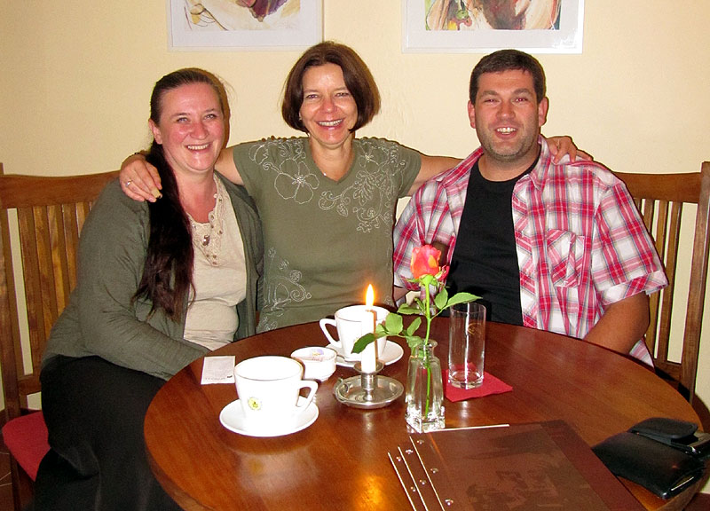05.02.2012 | Da Stephanie erst gegen Nachmittag in die Casa OLCA zurückkehren wird (sie muß z.B. noch einen Kuchen für ihre Volleyballdamen backen), treffen sich Olga und Carsten mit Kerstin aus Kaisitz, ihrem Sohn Felix und einem befreundeten Pärchen zu einem ausgiebigen Brunch im "Mama Africa". Es ist erstaunlich wie die Zeit zwischen 10 und 15 Uhr im Nu vergeht, wenn man sich ein paar Wochen nicht gesehen hat und es somit neben der tollen Auswahl an Gerichten auch noch sehr viel zu erzählen gibt. |